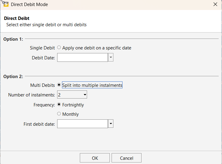 - You simply choose the specific debit date, and the entire amount will be processed on that day.